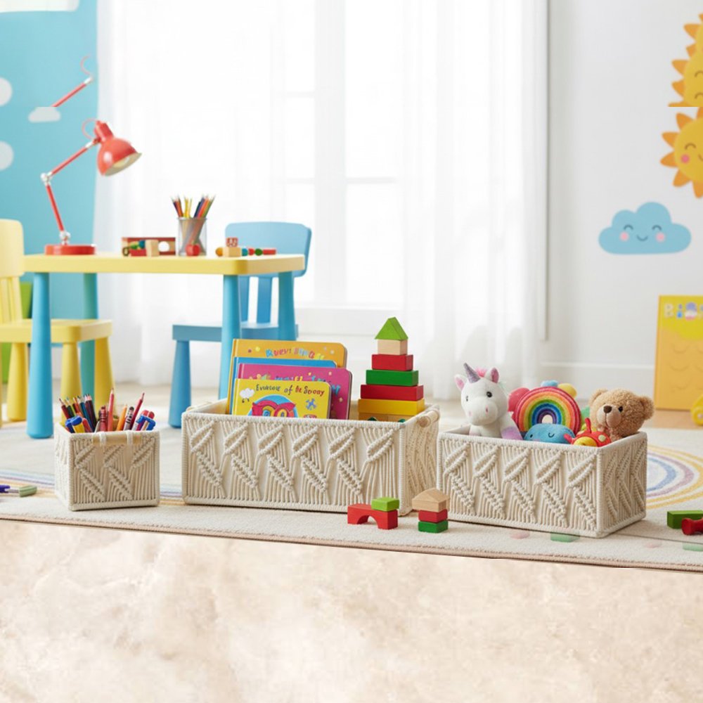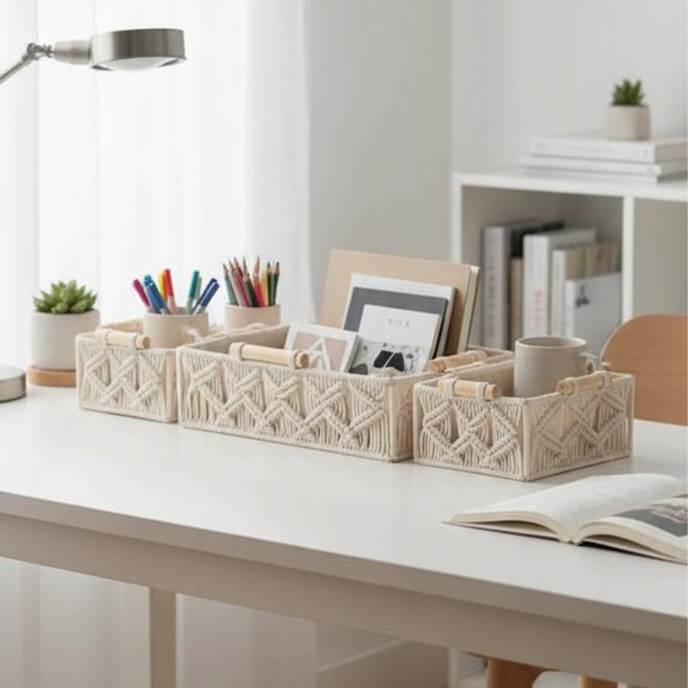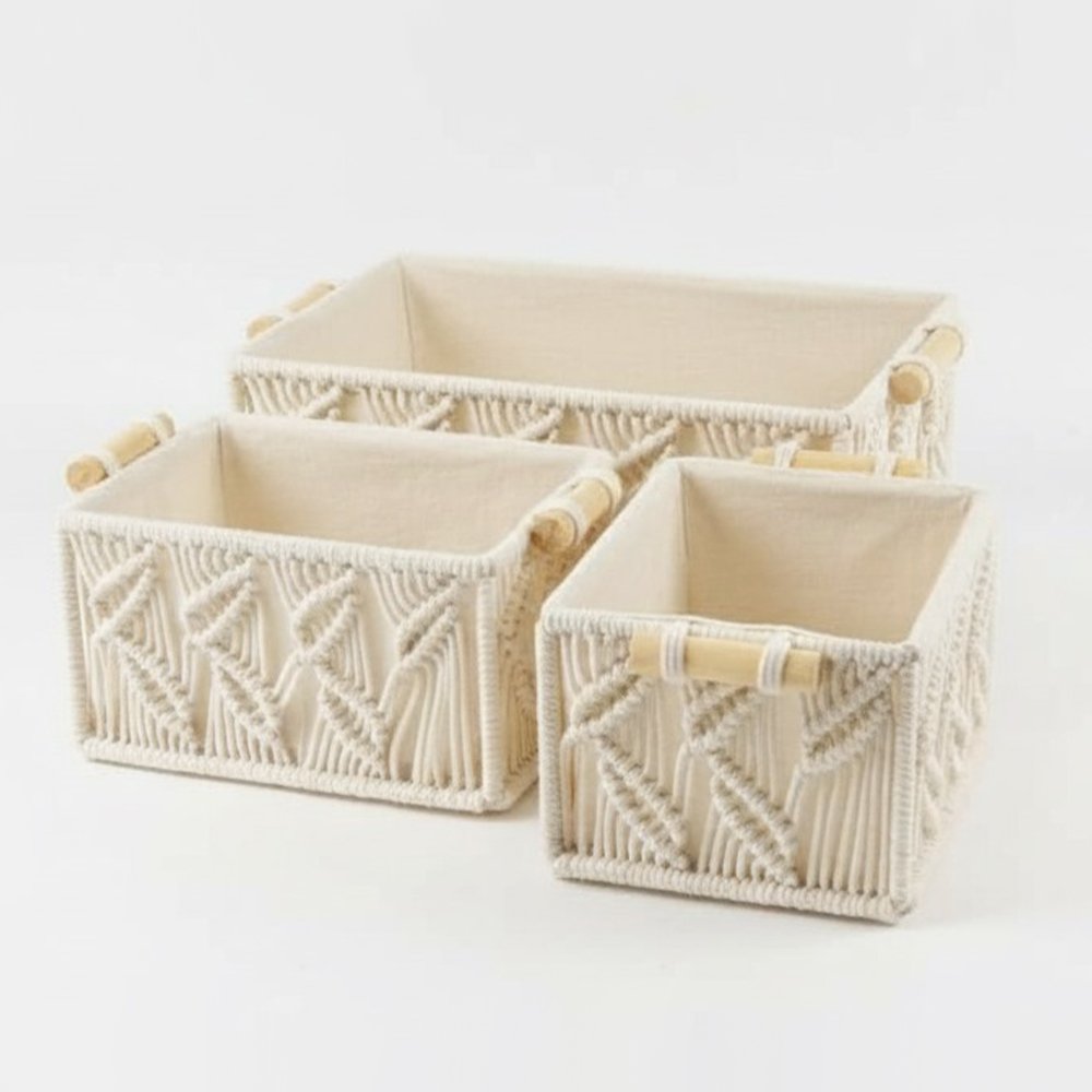 Handcrafted Macrame Basket Set of 3 – Cotton Storage and Home Organizer