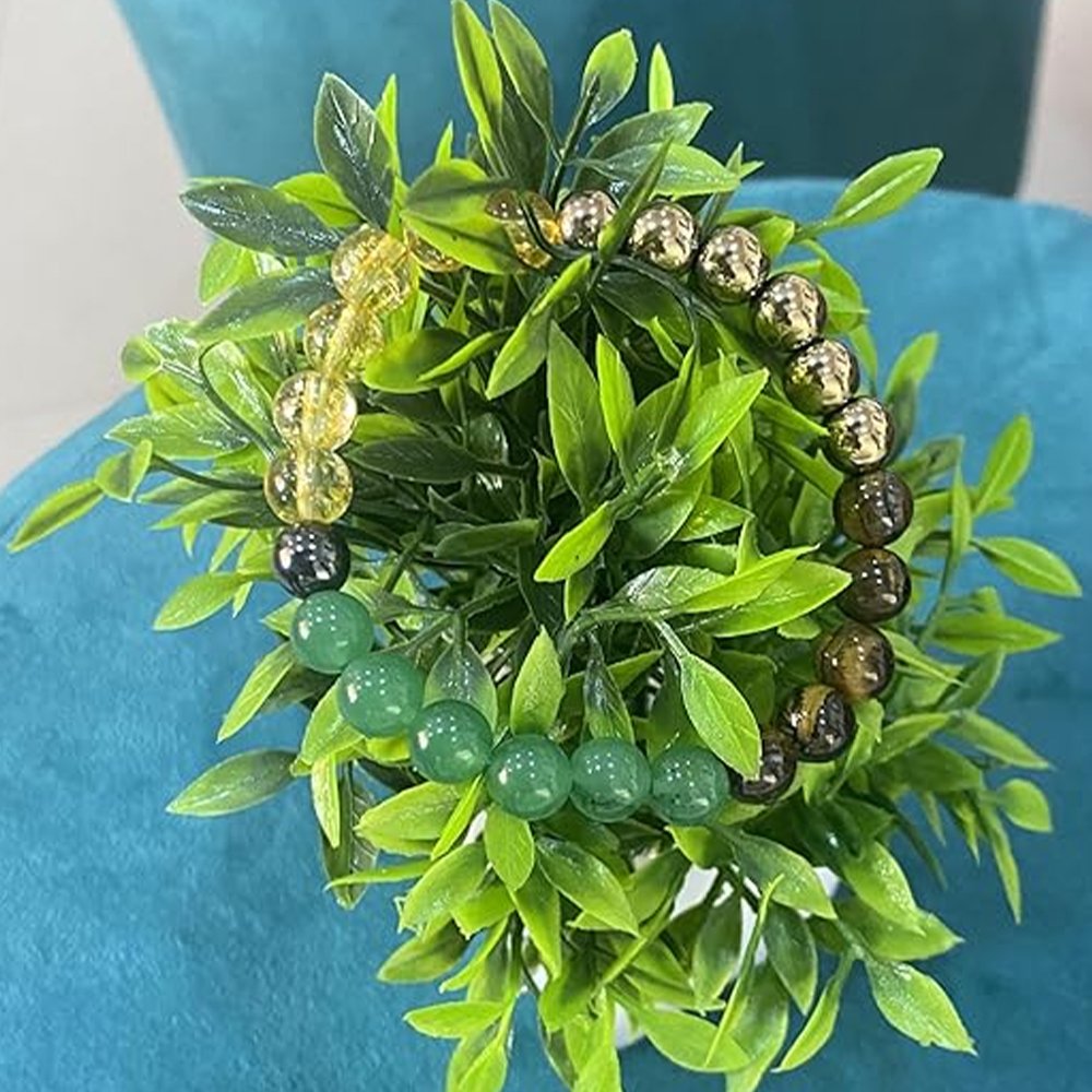 ✅ Material: 100% Natural Healing Stones – Green Tiger Eye, Amethyst, Pyrite, Green Aventurine, Citrine, Hematite, Clear Quartz