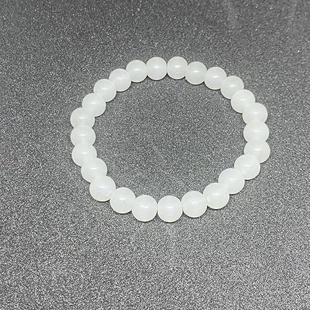 Made with 8 mm round natural moonstone beads, this bracelet is stretchable for a comfortable one-size fit (2.5-inch diameter). It contains no metal parts or clasp, making it skin-friendly and easy to wear all day. Each stone is carefully selected and charged by a Reiki Grand Master & Vastu Expert to enhance its natural healing benefits.