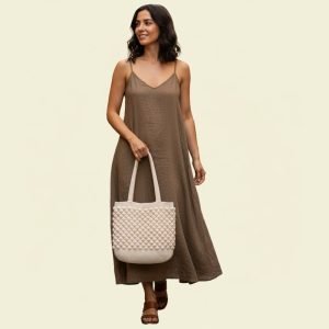 Shahi Aura Handmade Macramé Tote Bag – Cozy Knit Beach Bag