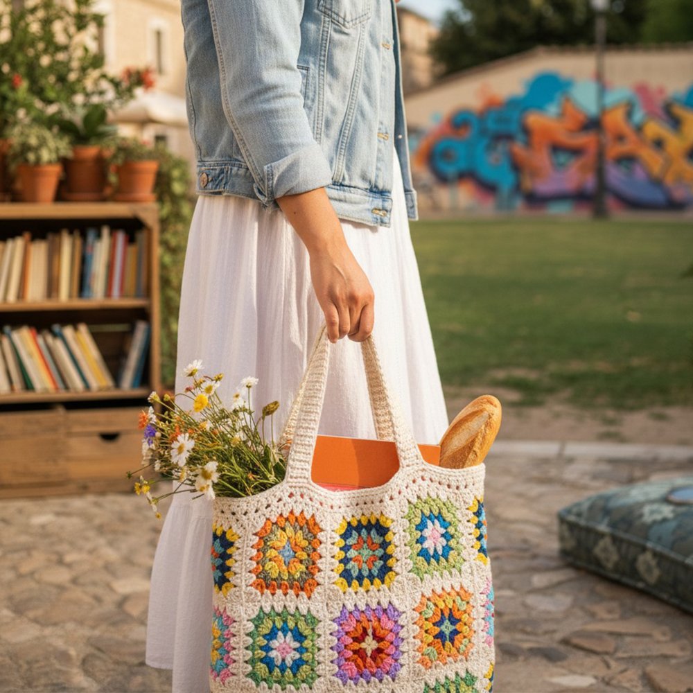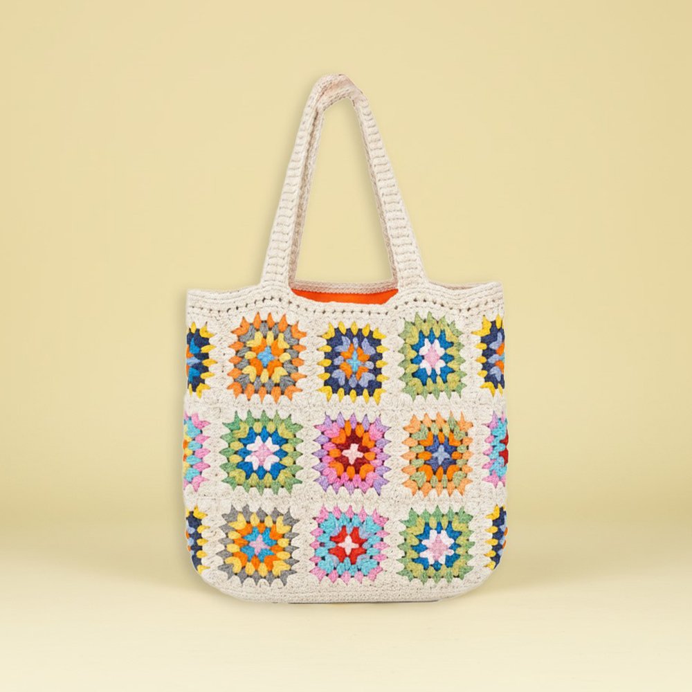 Shahi Aura Handcrafted Crochet Granny Square Tote Bag