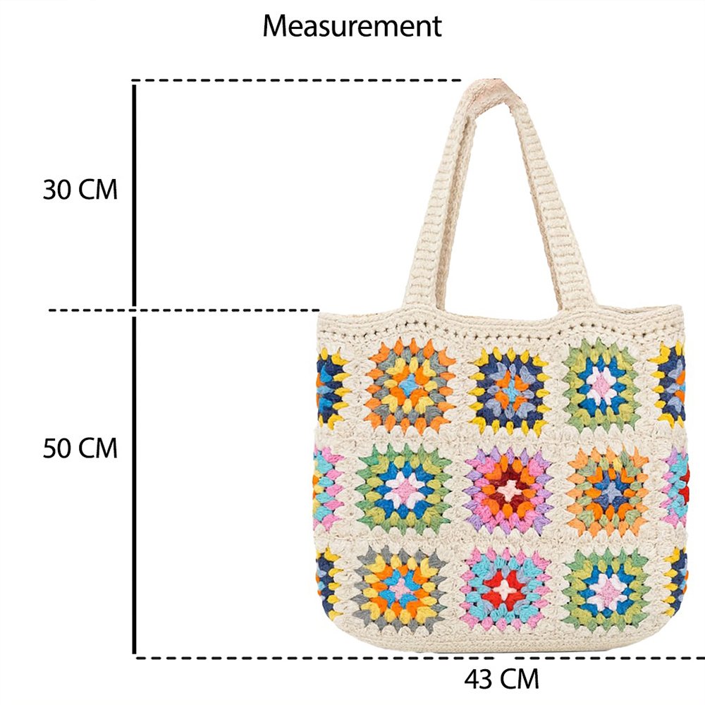 Shahi Aura Colorful Crochet Tote Bag with Granny Square Pattern