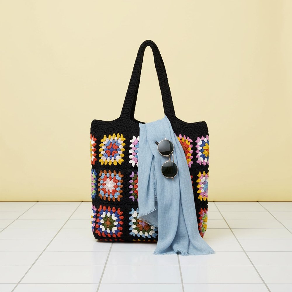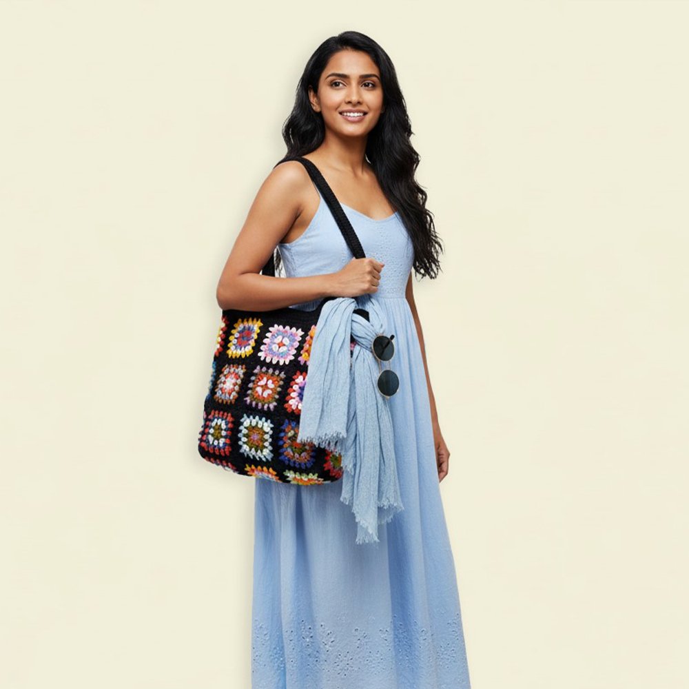 Shahi Aura Handcrafted Crochet Granny Square Tote Bag