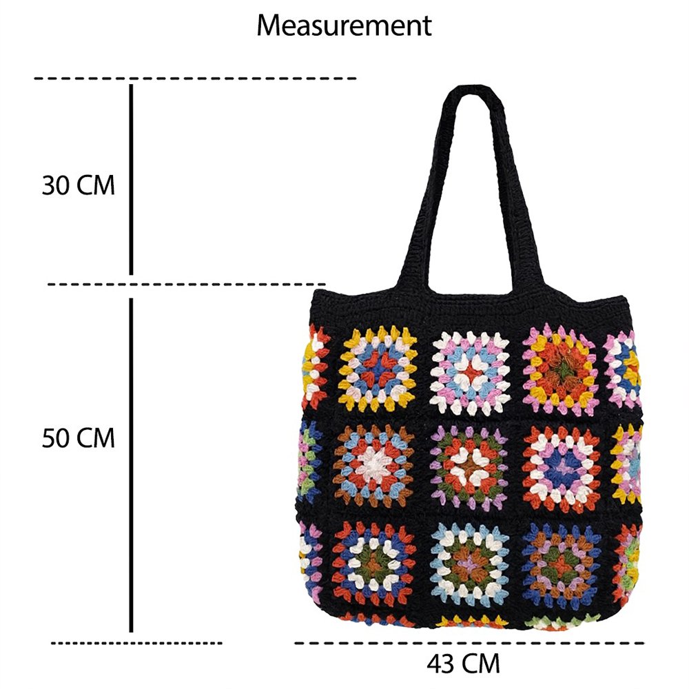 Discover the Shahi Aura Handcrafted Crochet Granny Square Tote Bag—a cheerful, colorful accessory that pairs retro crochet style with daily practicality. Featuring a patchwork of individually crocheted granny squares sewn into a bold black background, each tote is one-of-a-kind, handmade with care.